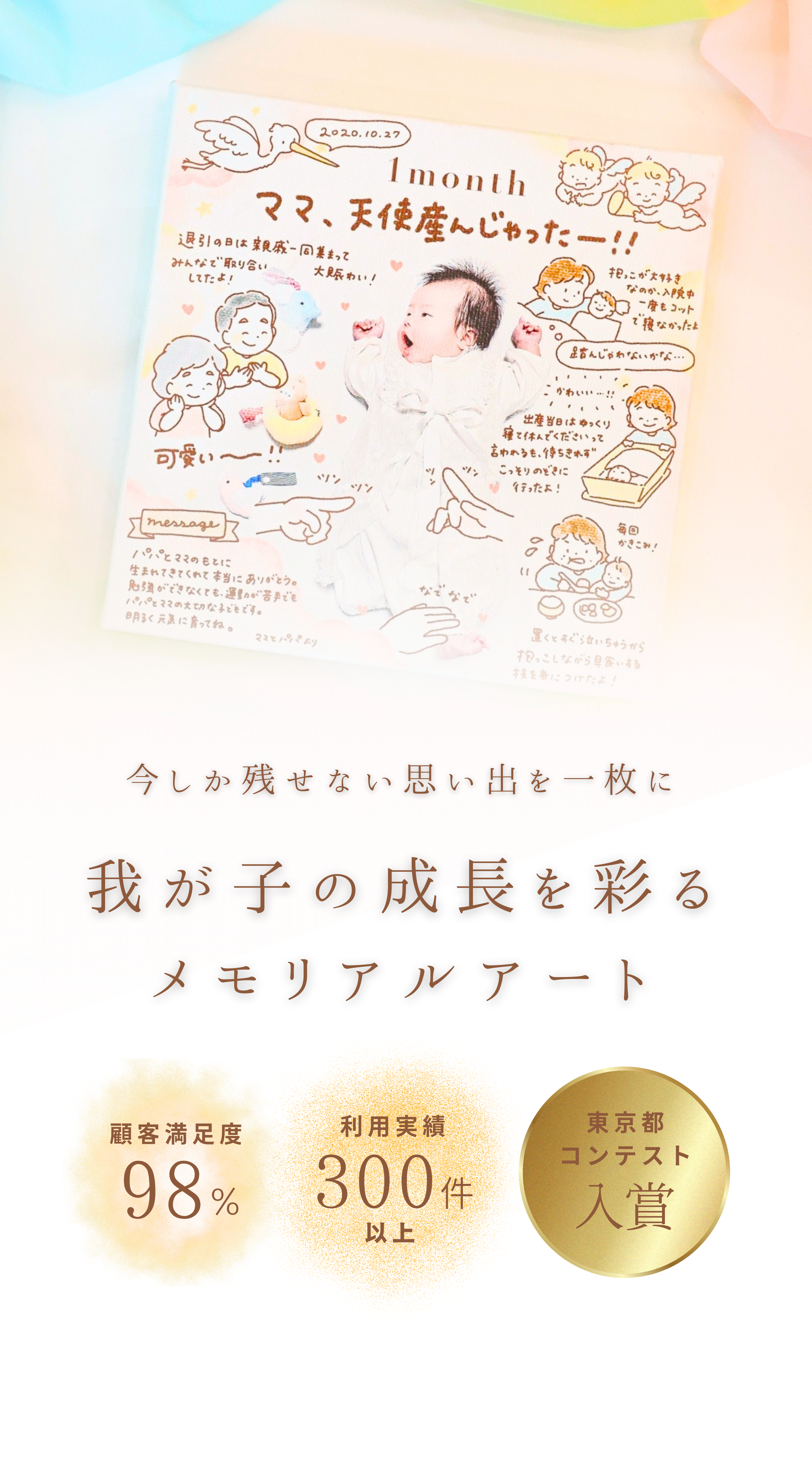 可愛い仕上がりで感激しました!普段育児日記などを残さないズボラなタイプなので、写真やコメントを送るだけでこうやって1ヶ月の記録を見える形で残していただけるのはとってもありがたいです。制作過程も全てが楽しかったです!来月もよろしくお願いします!